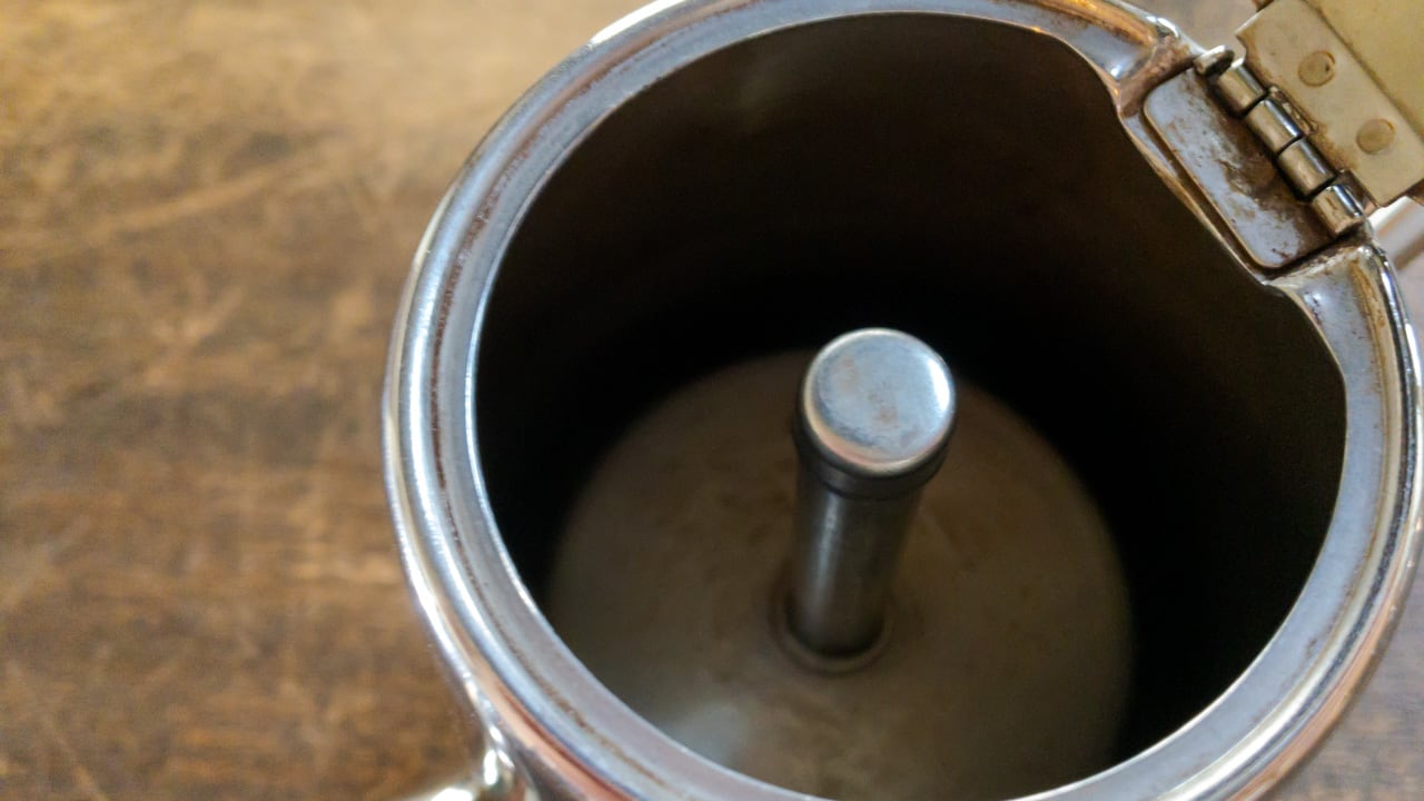 下の粉を入れる部分の部品(パッキン)がデッドストックのため、何があってもなんとかして使っていく気概のある方向けです。